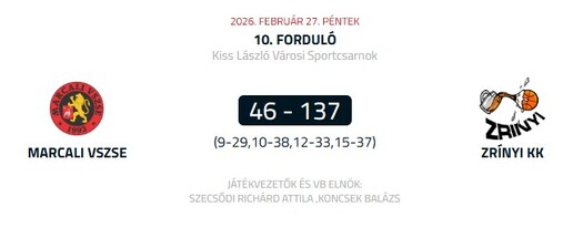 Február 27-én, pénteken rendezték meg a Somogyvármegyei Kosárlabda Bajnokság 10. fordulójának rangadóját, amelyen a Marcali VSZSE a bajnokságot vezető kaposvári Zrínyi KK együttesét fogadta a Marcali Kiss László Városi Sportcsarnokban.
